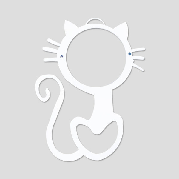 Portafoto gatto. Il Prodotto è realizzato a mano in Italia e realizzato in alluminio ipoallergenico e dipinto con smalto bianco Pet friendly.